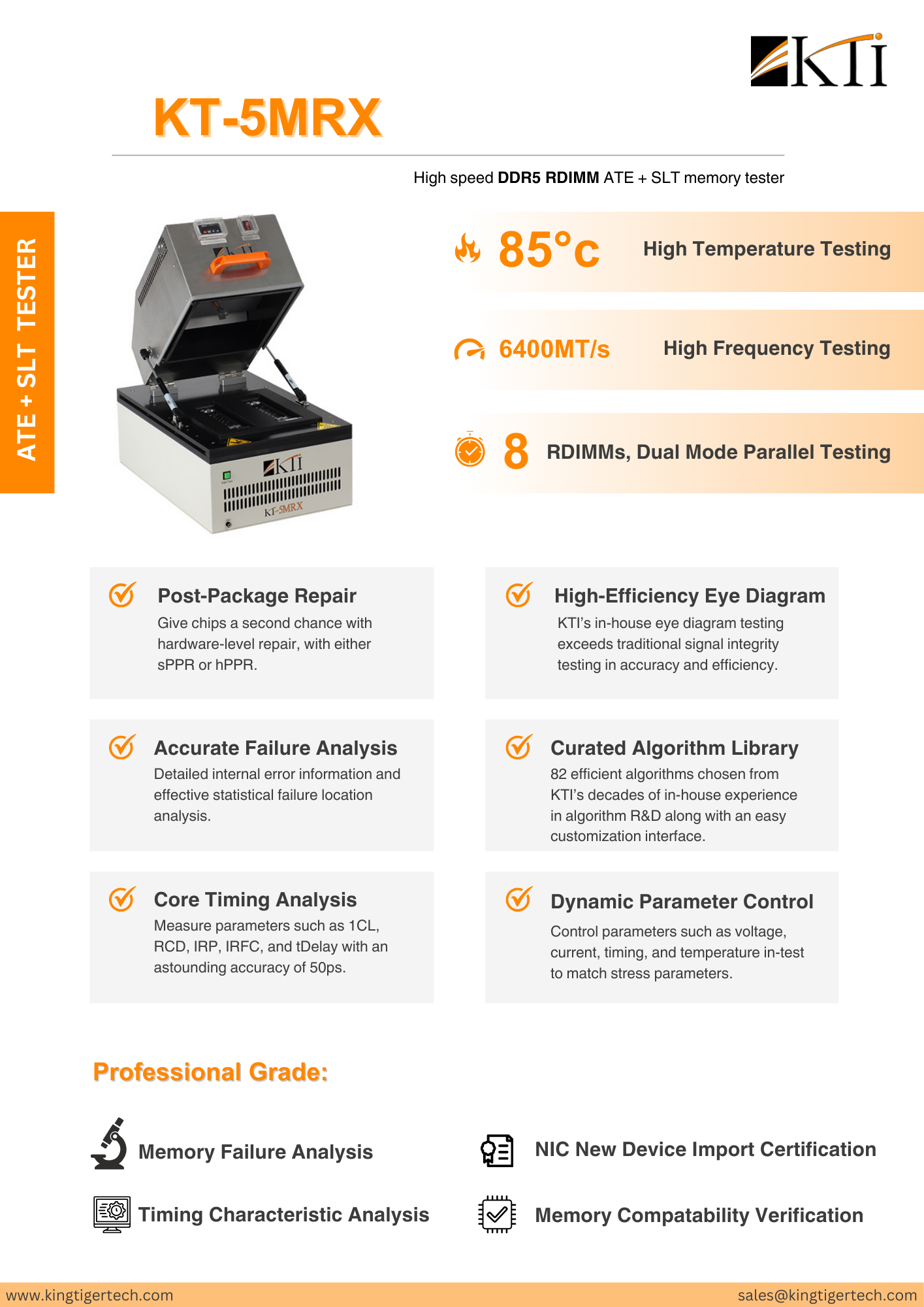 All Products › KT-5MRX Image 1 of 3 Image 2 of 3 Image 3 of 3 KT-5MRX HK$0.00 DDR5 RDIMM High Speed Module Tester Quantity: Add To Cart Added! DDR5 RDIMM High Speed Module Tester Contact us for Pricing